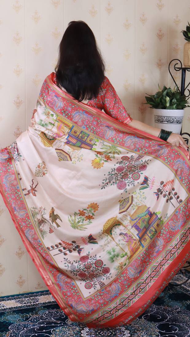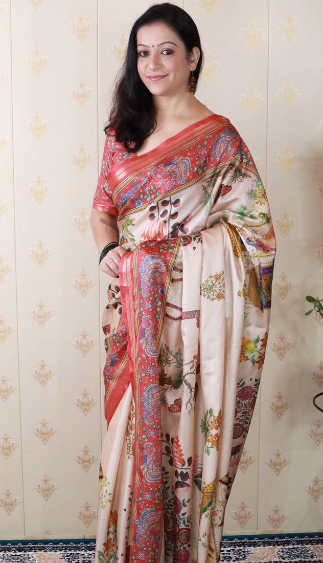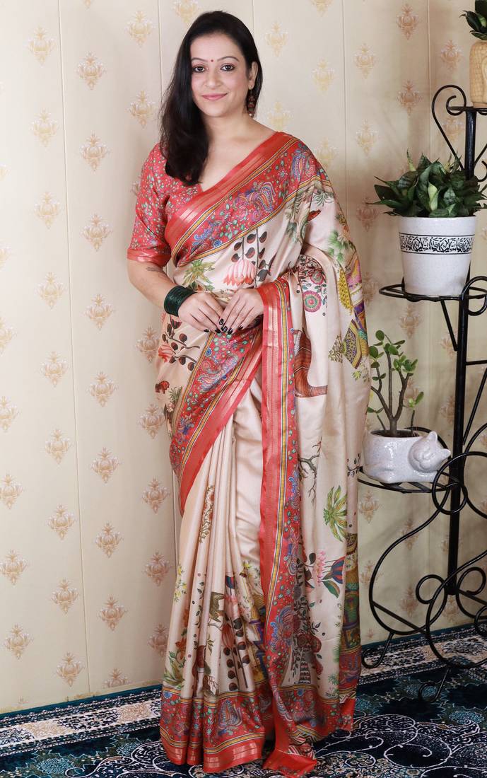 | Product Name | Tussar Silk Pattachitra Traditional Printed Zari Woven Saree | |