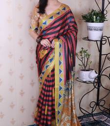 Tussar silk blend striped traditional printed zari woven saree
