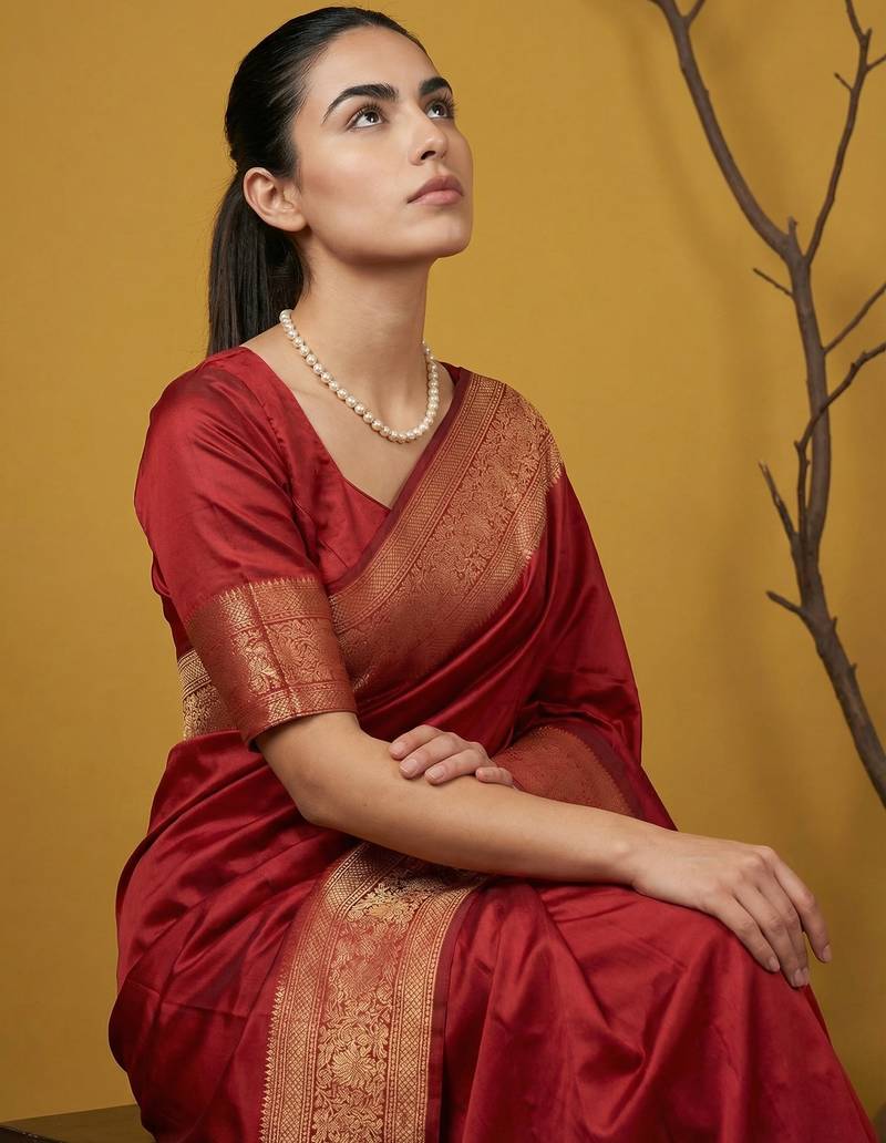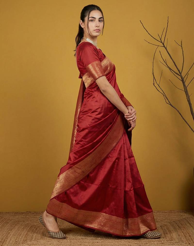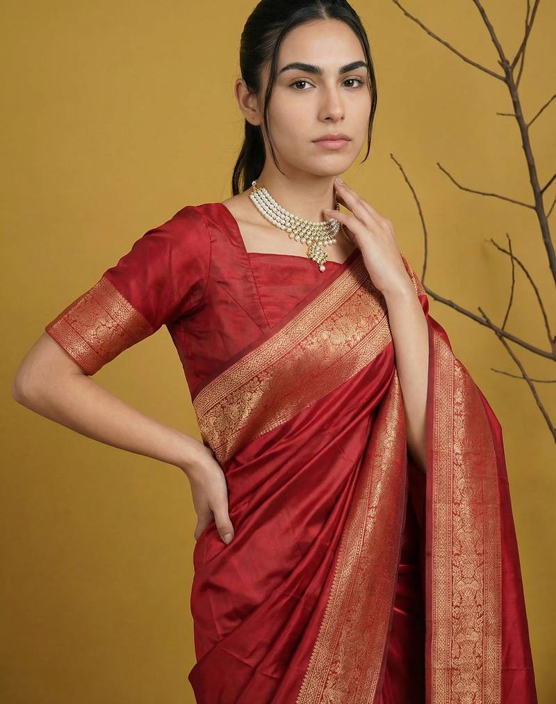 Zari woven design art silk traditional wear saree with unstitched blouse