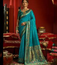 Aqua blue silk floral motifs woven work paithani saree