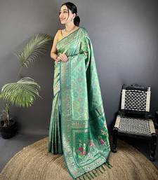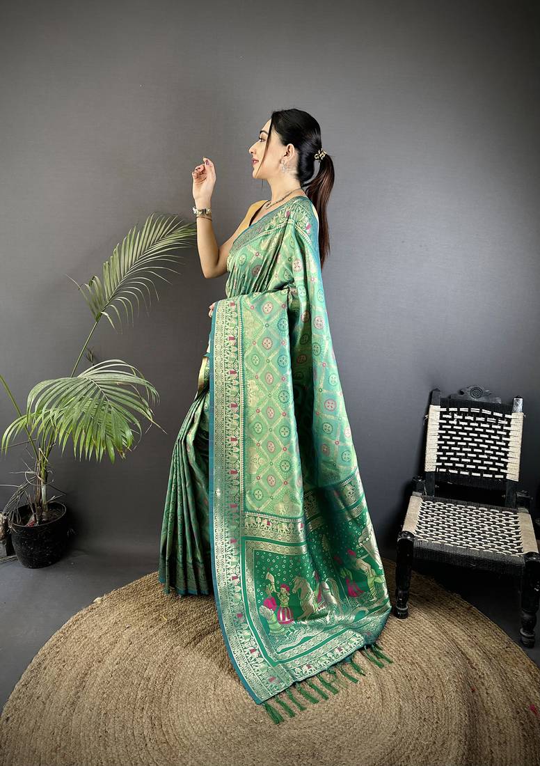 | Product Name | Aqua Green Soft Silk Blend Geomatric Zari Woven Patola Saree | |