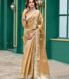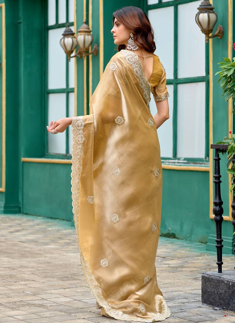 Beige shimmer chiffon geomatric embroidery work bollywood saree