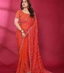 | Product Name | Carrot Red Fendy Silk Linear Sequence Beads Work Bollywood Saree | |