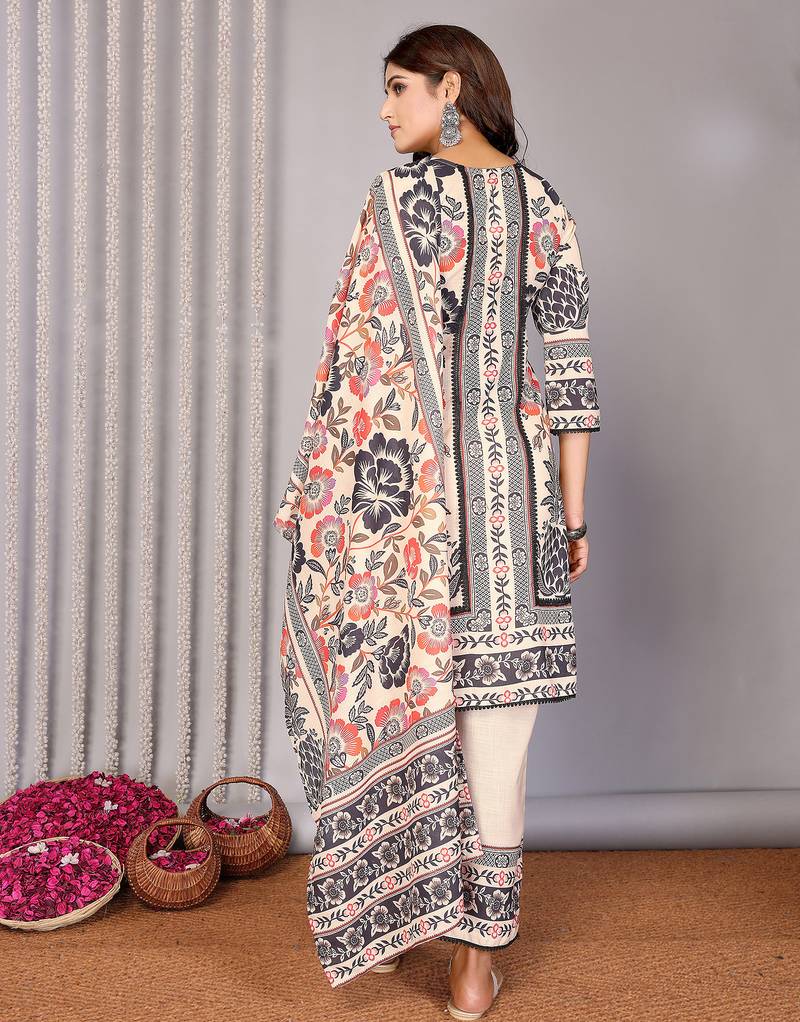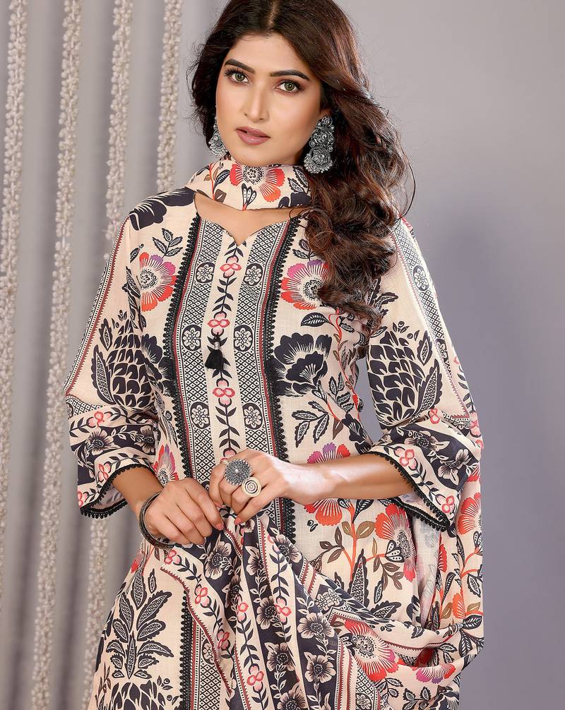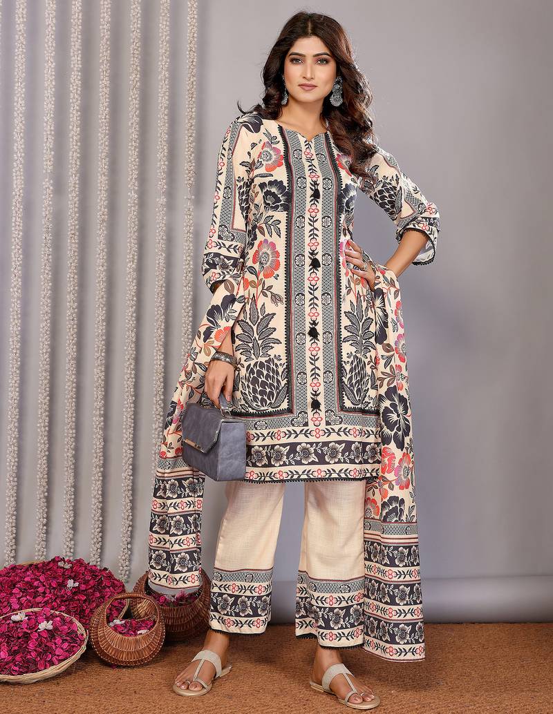 | Product Description | The Cream Linen Floral Printed Kurta Set Is Crafted From Soft, Breathable Linen, Making It The Ideal Choice For All Day Wear Whether You’re At The Office, Meeting Friends, Or Enjoying A Casual Outing. The Straight Kurta Provides A Relaxed Yet Flattering Fit That Gracefully Skims Your Body, Enhanced By A Chic Notch Neckline And Delicate Floral Prints. This Complete Set Includes A Comfortable Kurta, Coordinating Bottom, And A Matching Dupatta, Offering Effortless Ethnic Style For Any Occasion. With An Inclusive Size Range, You Can Easily Find Your Perfect Fit. Fabric: Linen (Soft & Breathable)