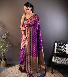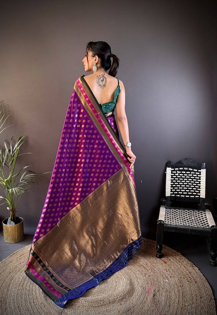 Elora soft silk butti zari weaving work banarasi saree(purple)