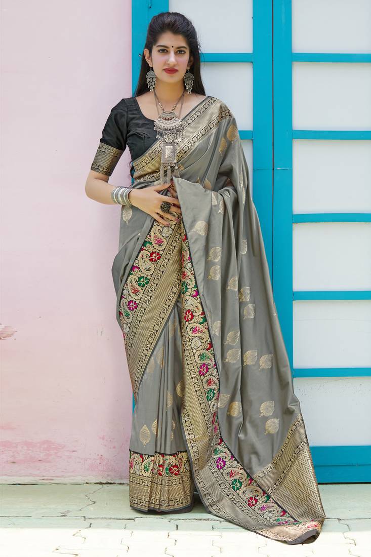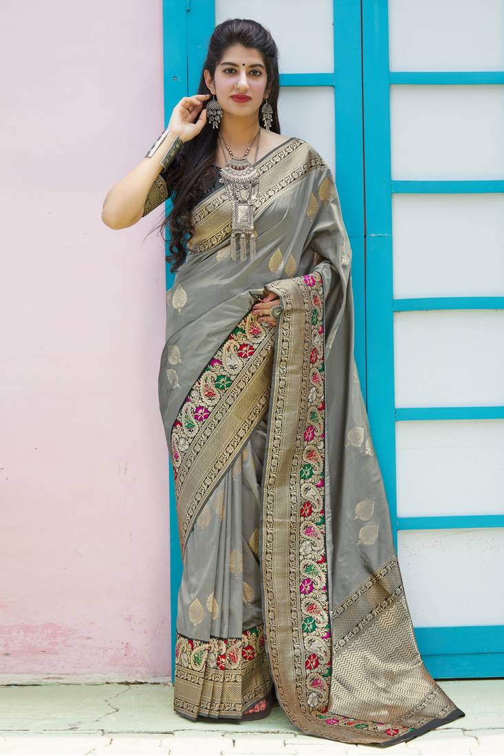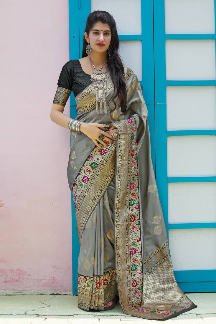 | Product Name | Grey Woven Banarasi Silk Saree With Blouse | |