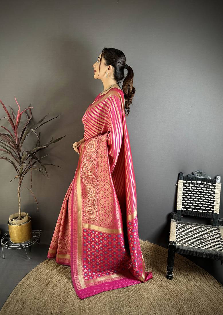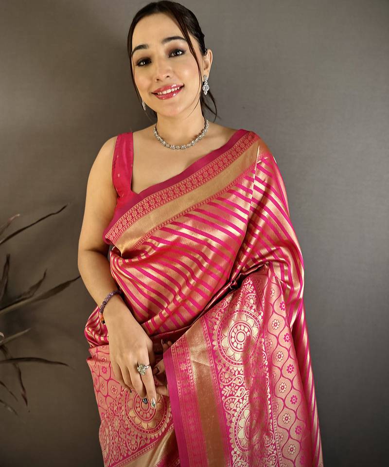 Magenta soft silk geometric pattern zari weaving banarasi saree