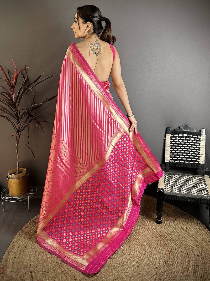 | Product Name | Magenta Soft Silk Geometric Pattern Zari Weaving Banarasi Saree | |