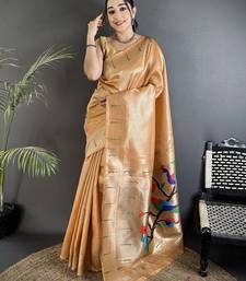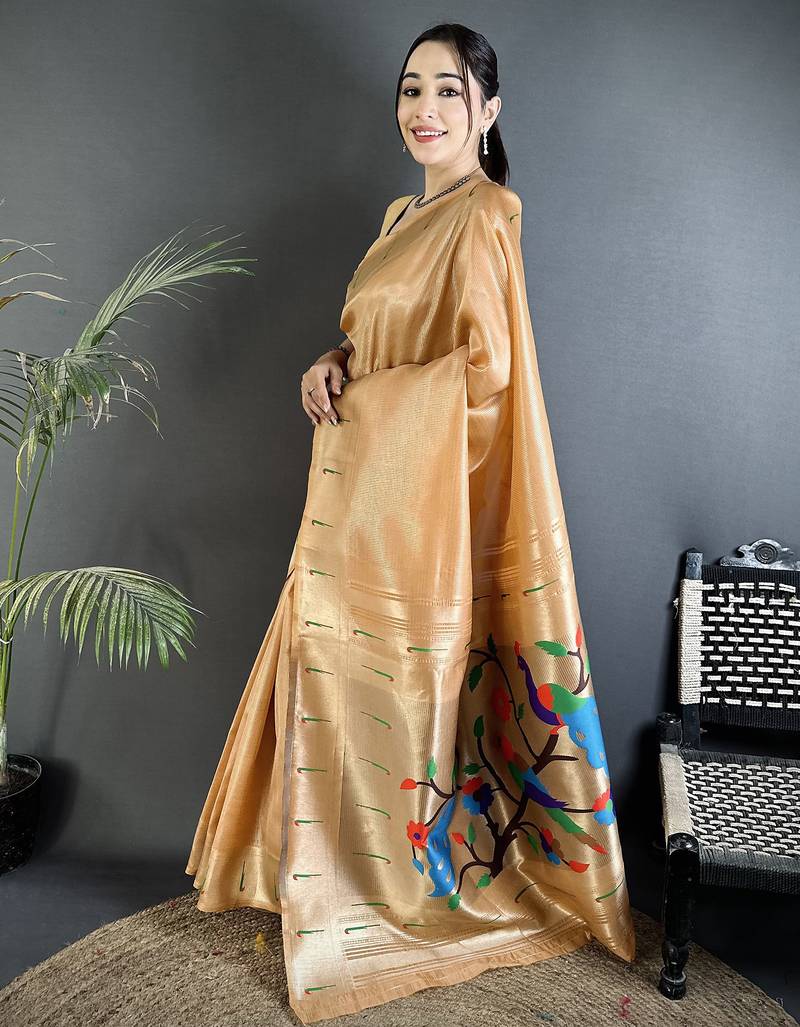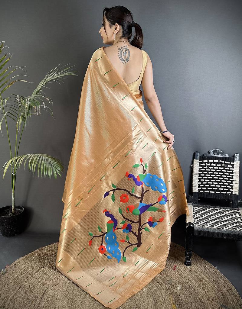 Mustard gold tissue minakari plain zari weaving paithani saree