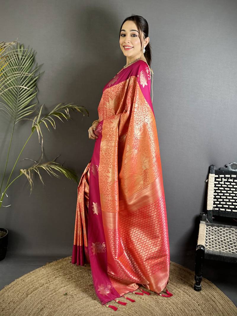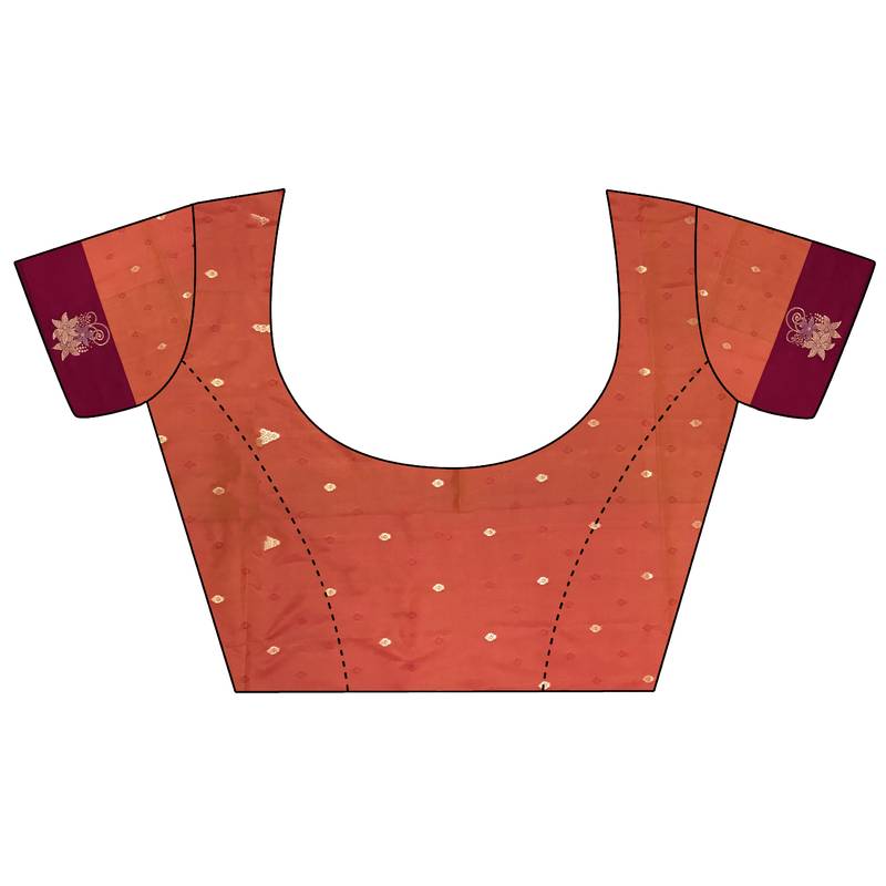 | Product Name | Orange Soft Silk Blend Intricate Rose Gold Zari Weaving Dharmavaram Saree | |