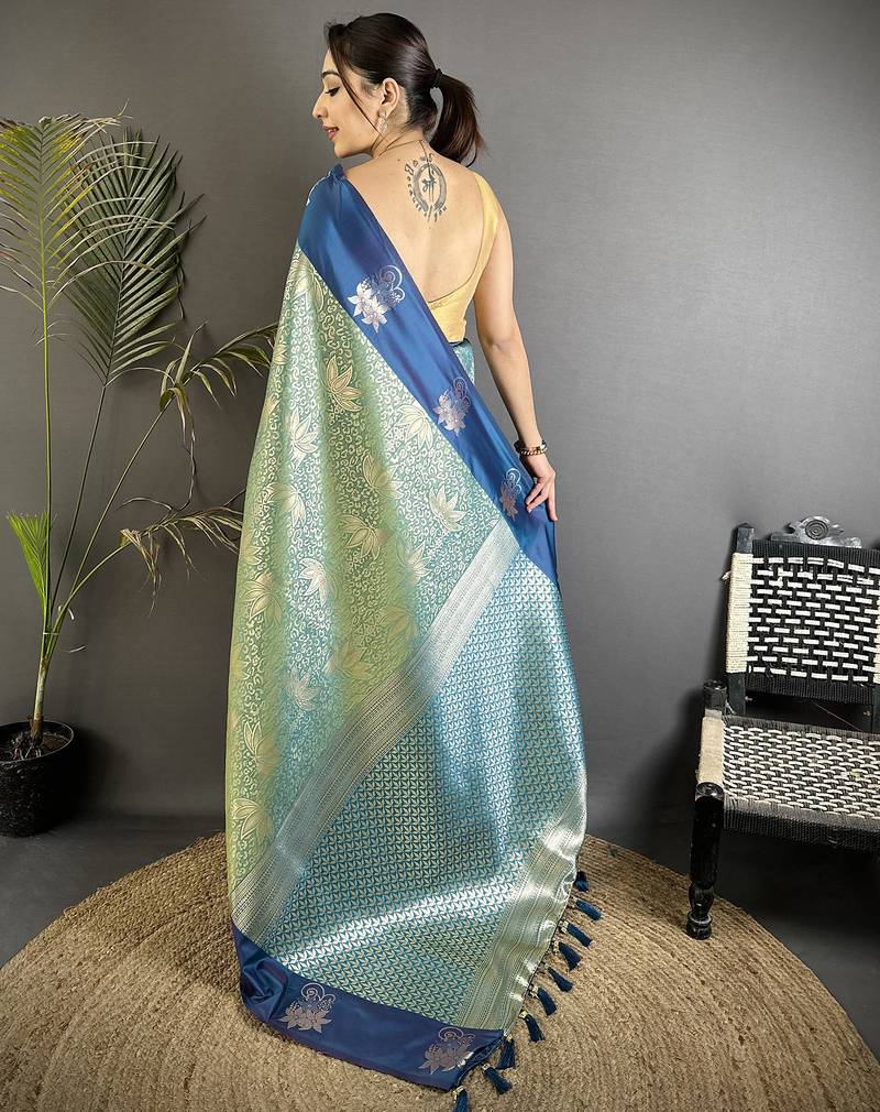 | Product Name | Pista Green Soft Silk Blend Intricate Rose Gold Zari Weaving Dharmavaram Saree | |
