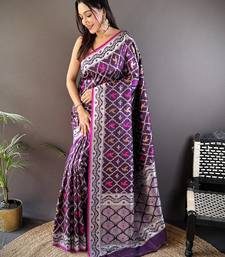 Purple lichi soft silk jacquard silver gold zari weaving banarasi saree
