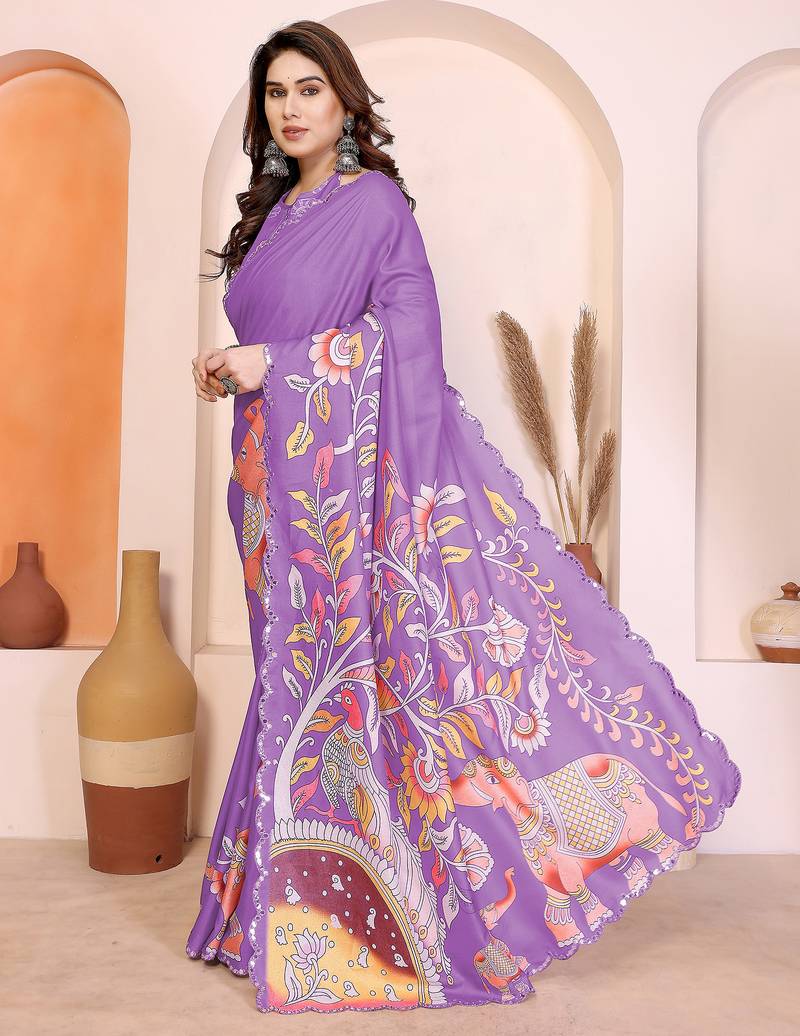| Product Name | Purple Manipuri Kalamkari & Digital Print Saree With Mirror Work Border | |