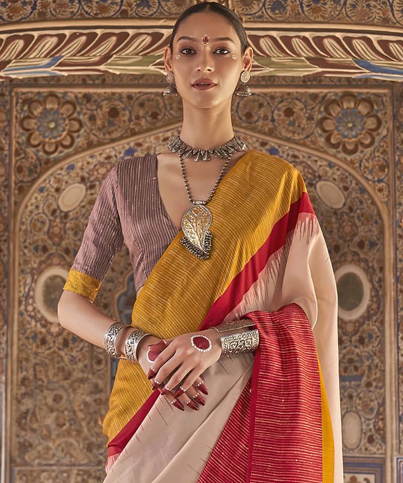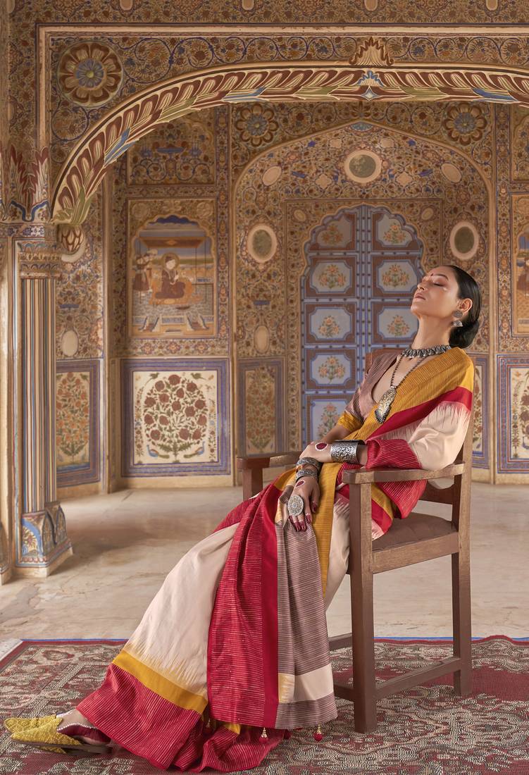 red poly viscose silk blend stripes kanjeevaram zari weaving saree