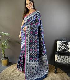 Royal blue lichi soft silk jacquard silver gold zari weaving banarasi saree