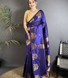 Violet soft silk blend mofits zari weaving banarasi saree with unique border
