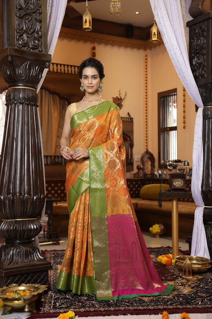 Elora Floral Shimmer Organza Designer Saree For Women Will Be A Perfect Addition To Your Ethnic Collection. Elora Sarees Are Designed In House By Master Weaver And Made In Best Quality Fabric. This Premium Designer Saree Is Sure To Add Oodles Of Grace And Vibrant Colours To Your Personality. This Trendy, Appealing And Eye Catching Saree Is Perfect For Day Wear And Evening Wear For Any Occasion.