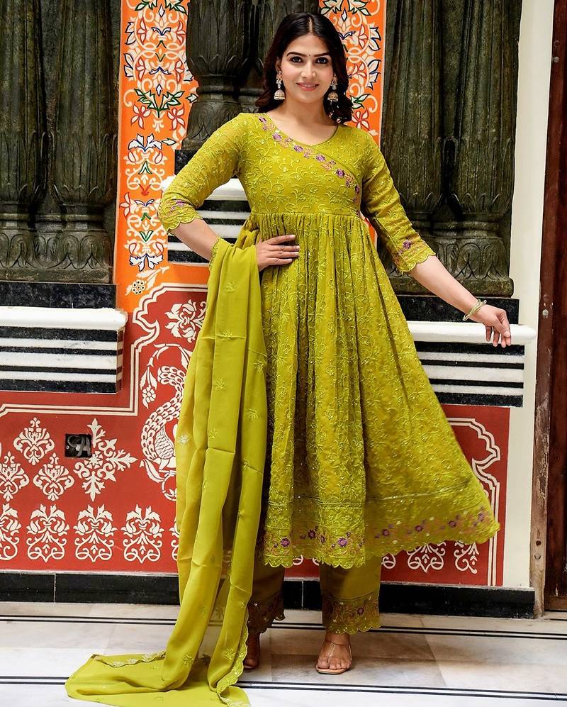 Embroidered georgette febric with lining kurta, pant & dupatta sets