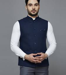 | Product Description | Blue Nehru Jacket With Self Shine, Comes With A Mandarin Collar (Bandhgala), Straight Button Placket, 3 Welt Pockets And A Pocket Square. |