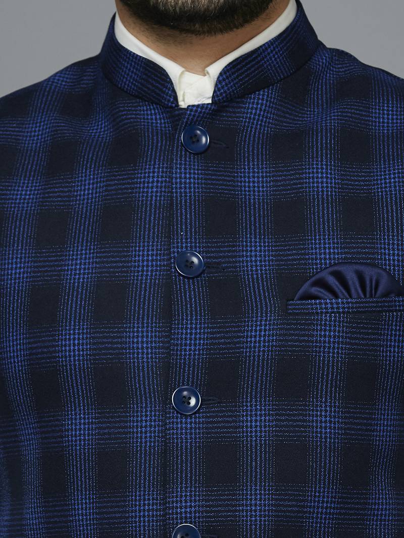 | Product Name | Men Deep Blue Nehru Jacket With Royal Blue Multi Lines Chex | |