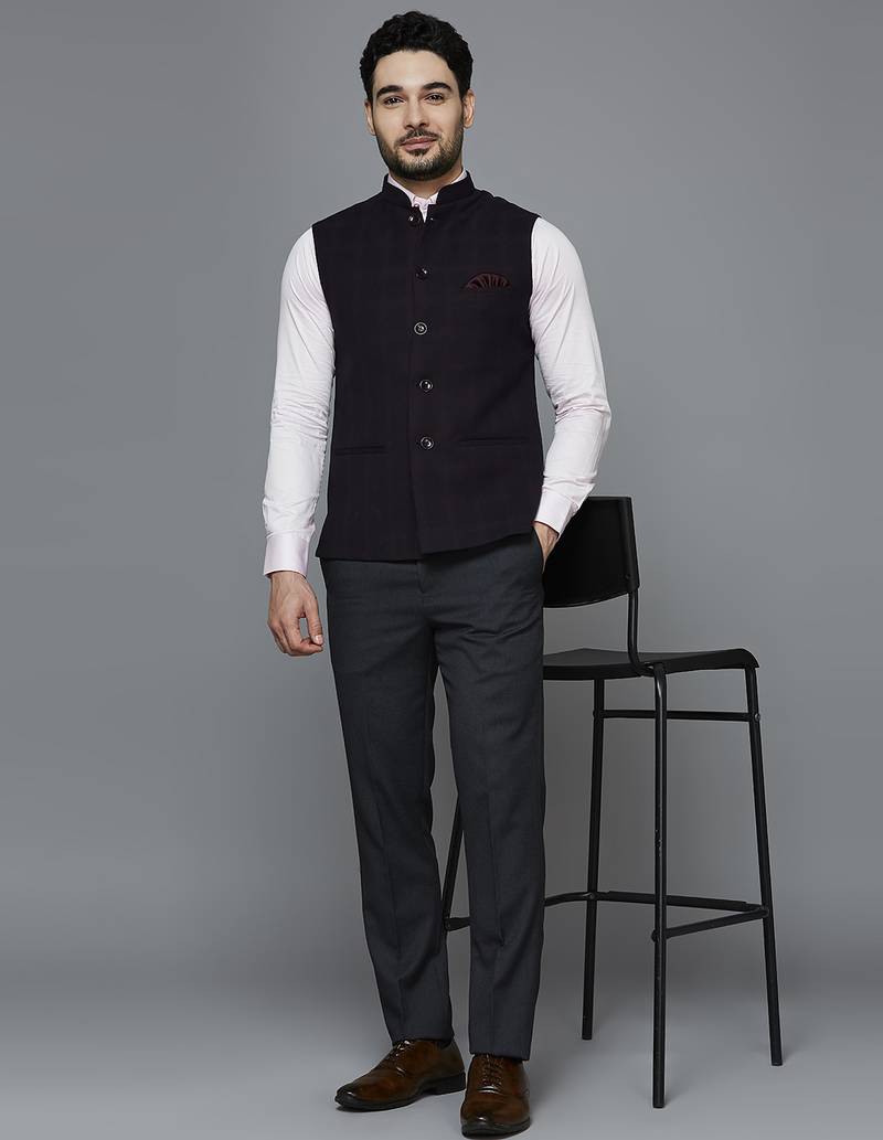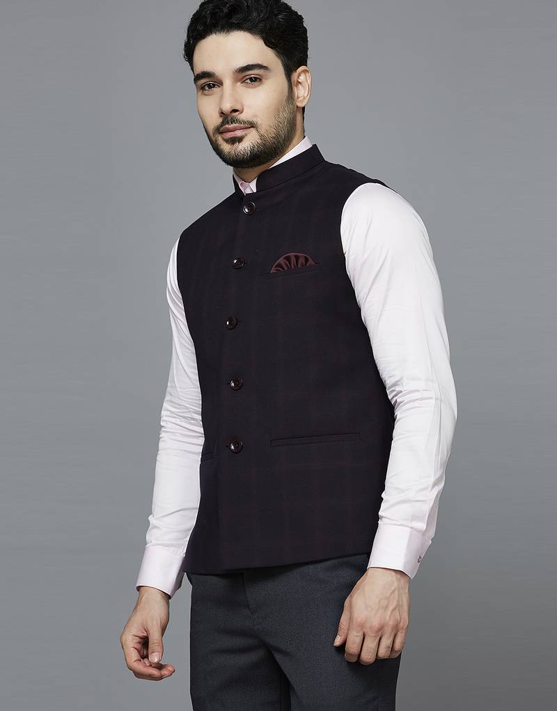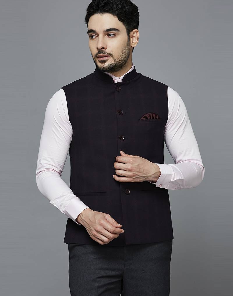 | Product Name | Men Maroon Chex Nehru Jacket | |