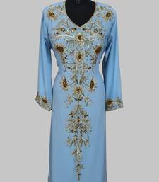 | Product Name | Elegant Cyan Blue Georgette Kaftan Gown With Golden Zari Work With Hijab. | |