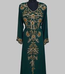 | Product Name | Elegant Dark Green Georgette Kaftan Gown With Golden Zari Work With Hijab. | |