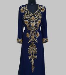 | Product Name | Elegant Navy Blue Georgette Kaftan Gown With Golden Zari Work With Hijab. | |