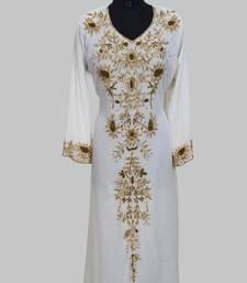 | Product Name | Elegant Off White Georgette Kaftan Gown With Golden Zari Work With Hijab. | |