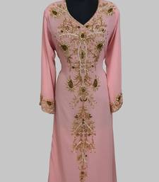 | Product Name | Elegant Peach Georgette Kaftan Gown With Golden Zari Work With Hijab. | |