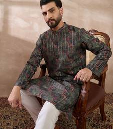 | Product Name | Men Black Silk Blend Printed Mandarin Collar Straight Kurta With Trouser | |