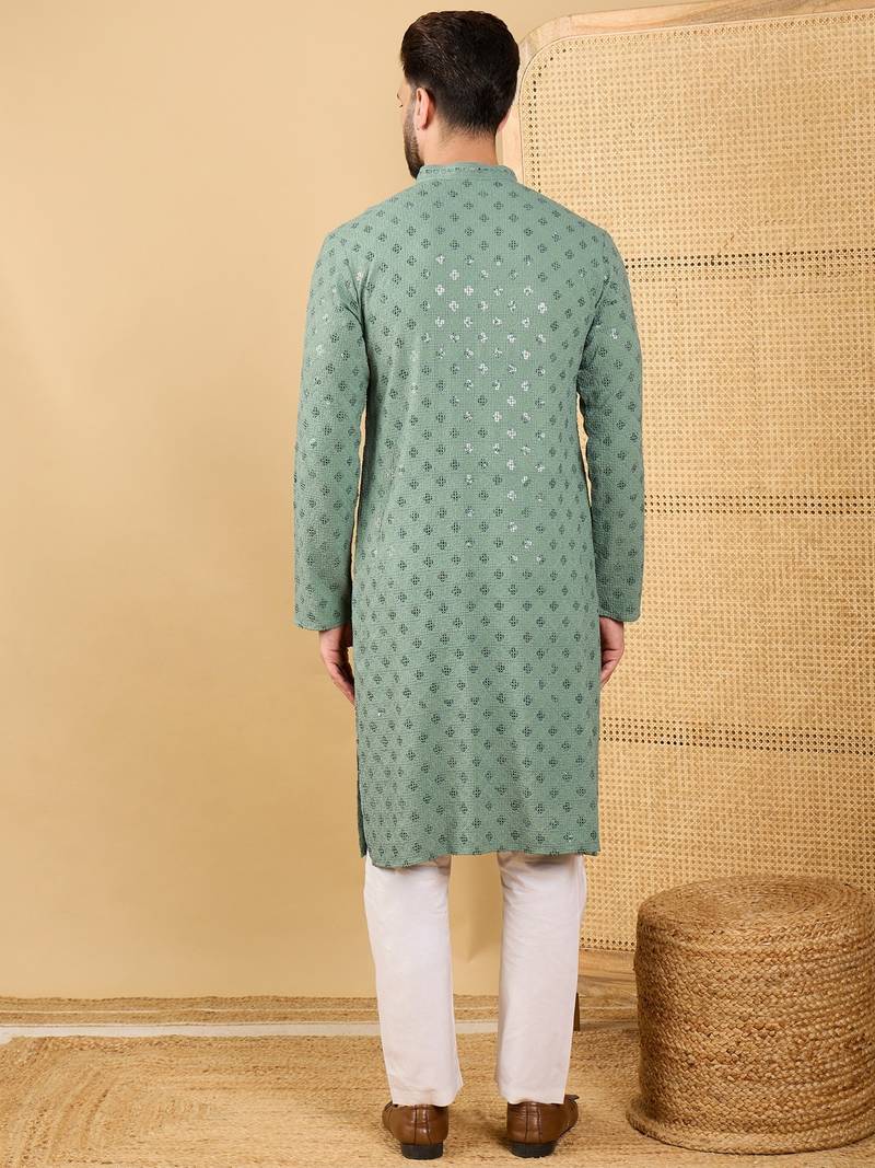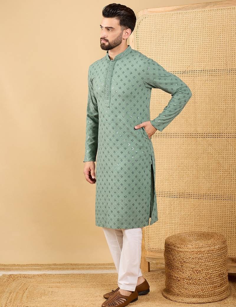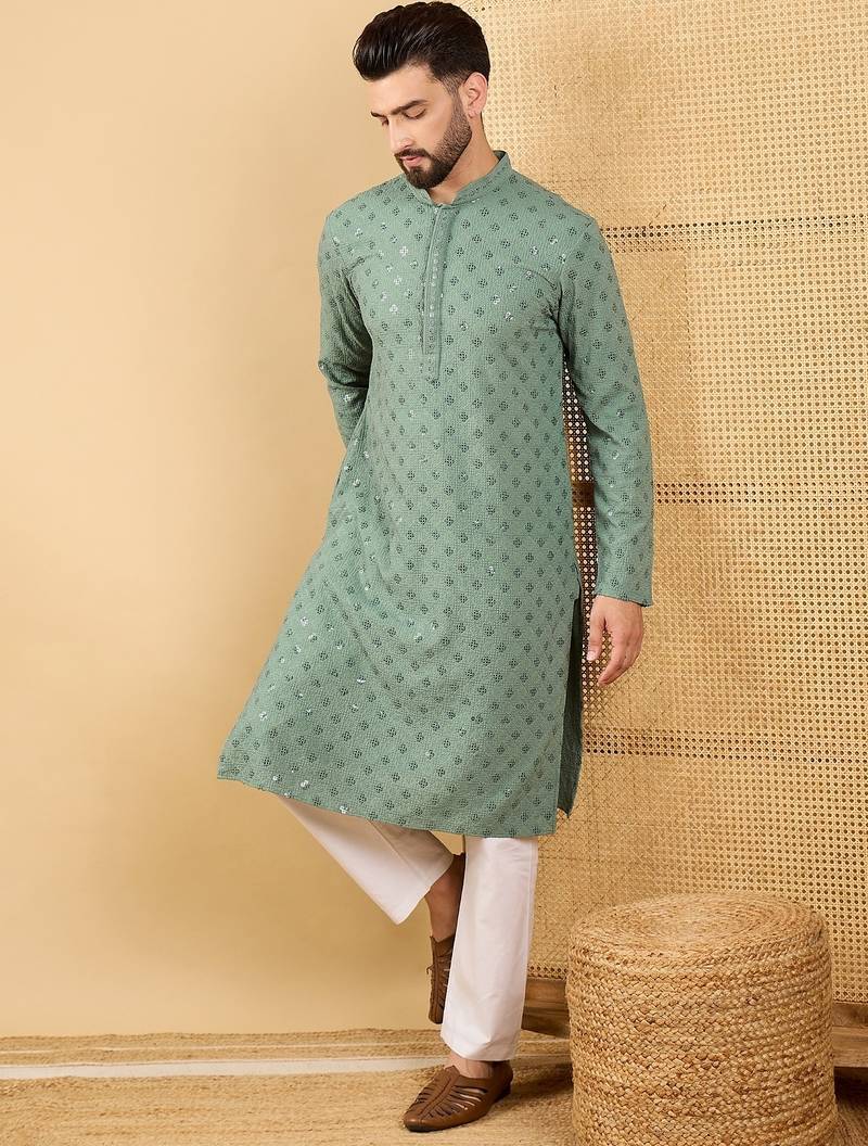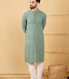 | Product Name | Men Green Viscose Rayon Solid Embroidered Straight Kurta With Trousers | |