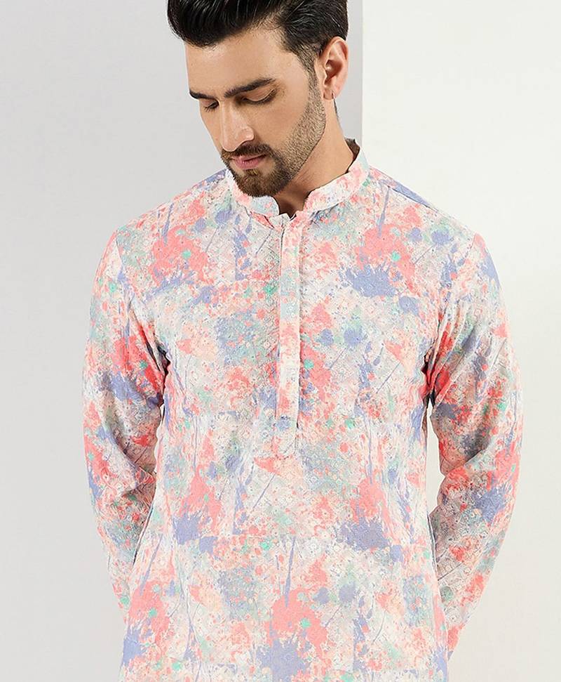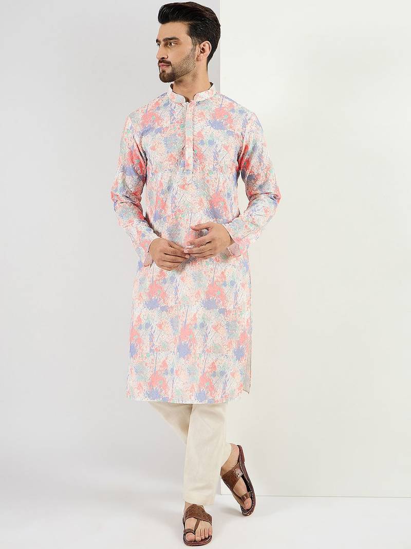 | Product Name | Men Off White Viscose Rayon Abstract Embroidered Straight Kurta With Pant Set | |