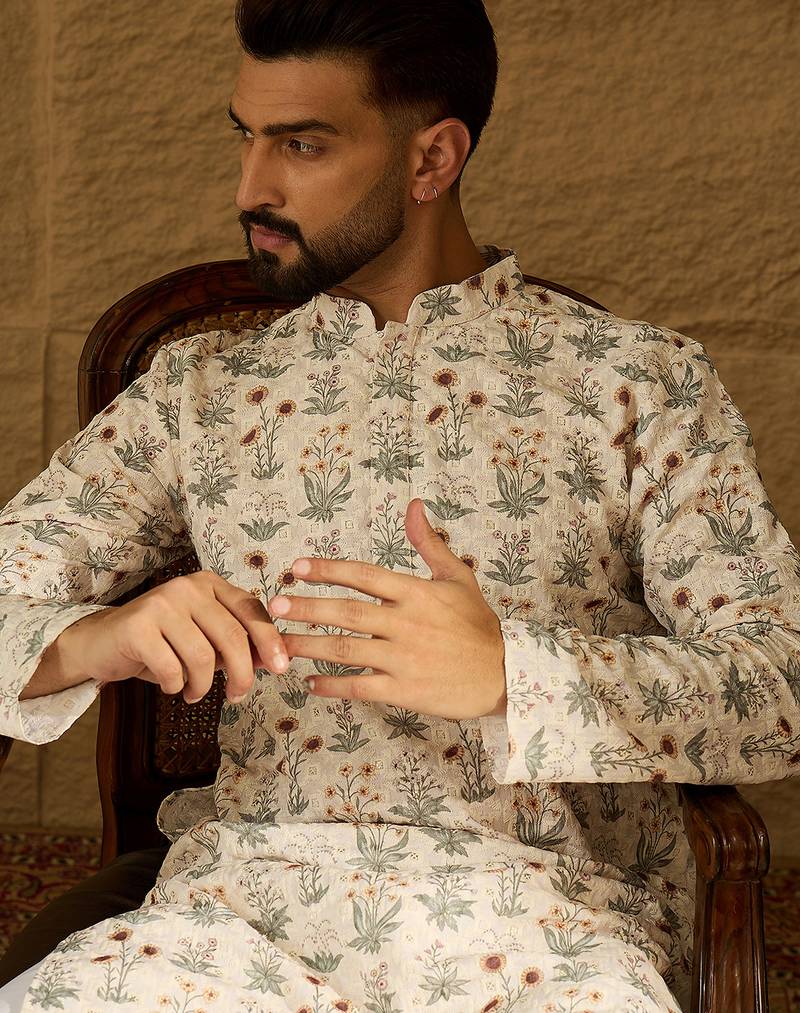 Product Name Men Off White Viscose Rayon Floral Printed Straight Kurta