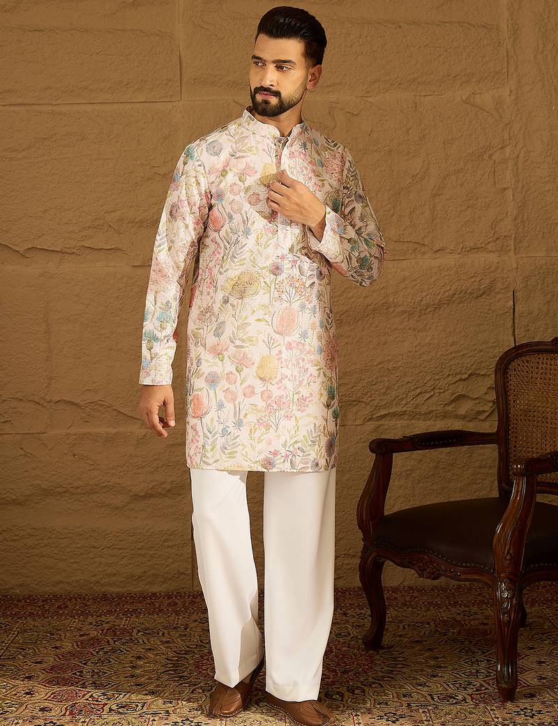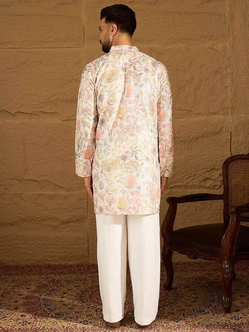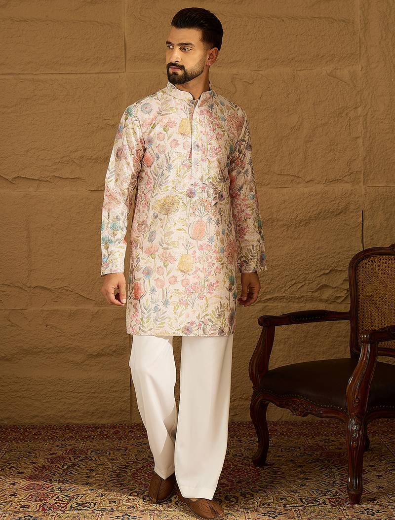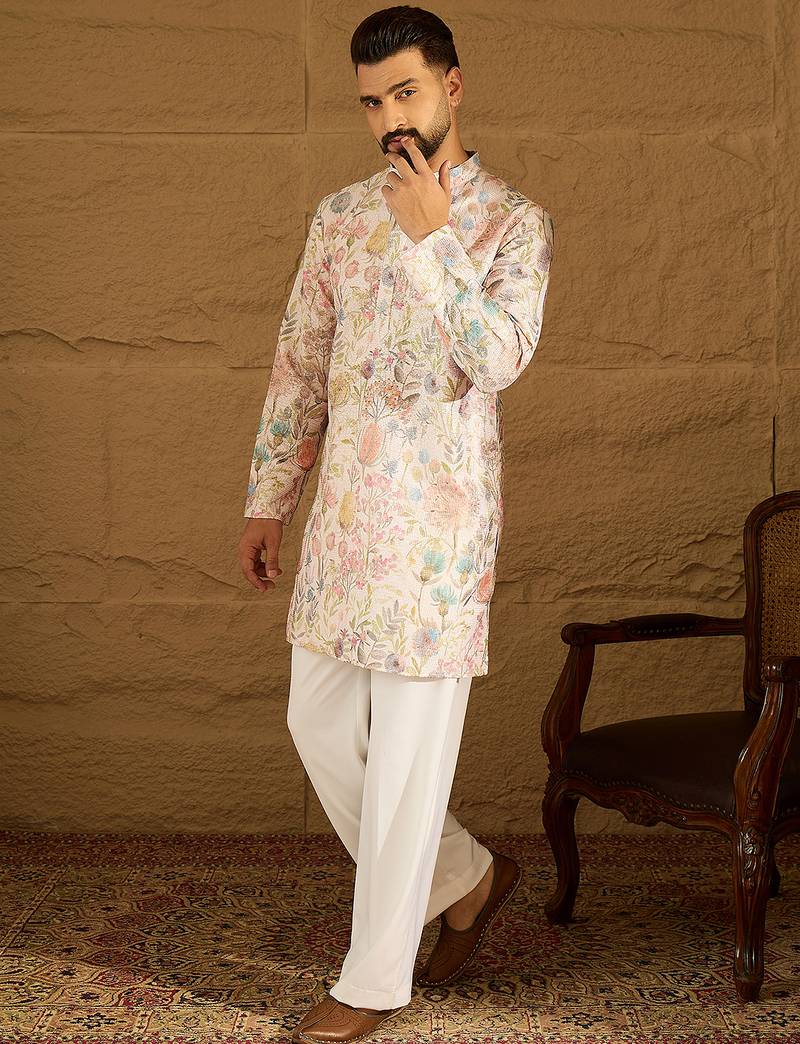 | Product Name | Men Off White Viscose Rayon Floral Printed Straight Kurta With Trouser | |