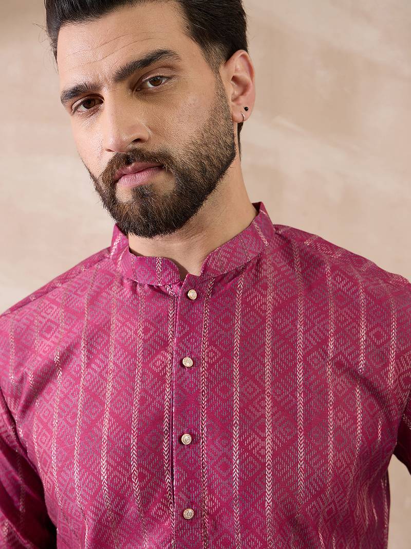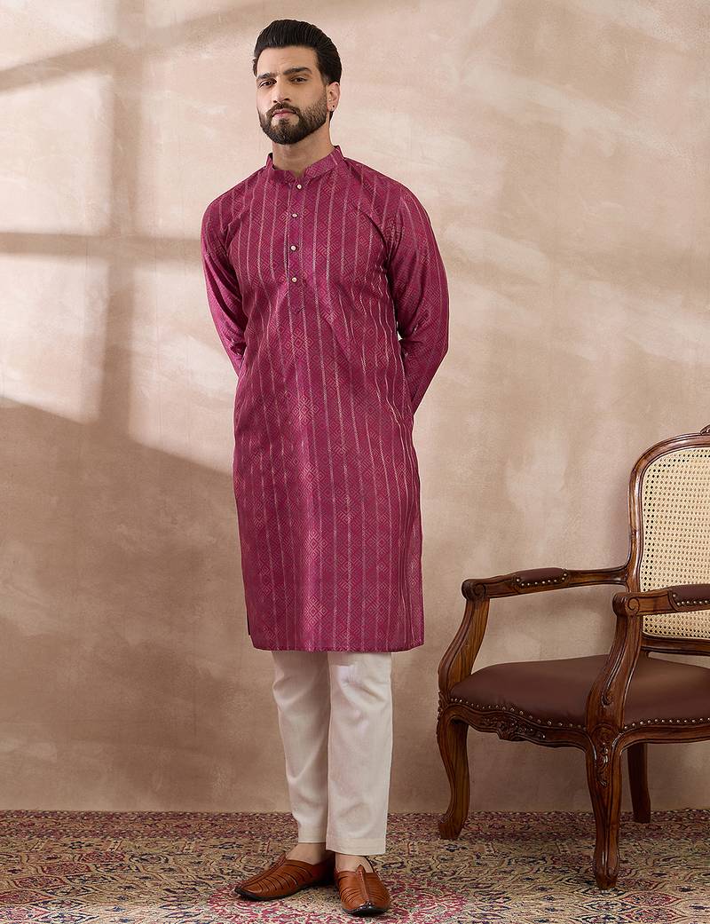 | Product Name | Men Pink Silk Blend Printed Mandarin Collar Straight Kurta With Trouser | |