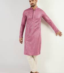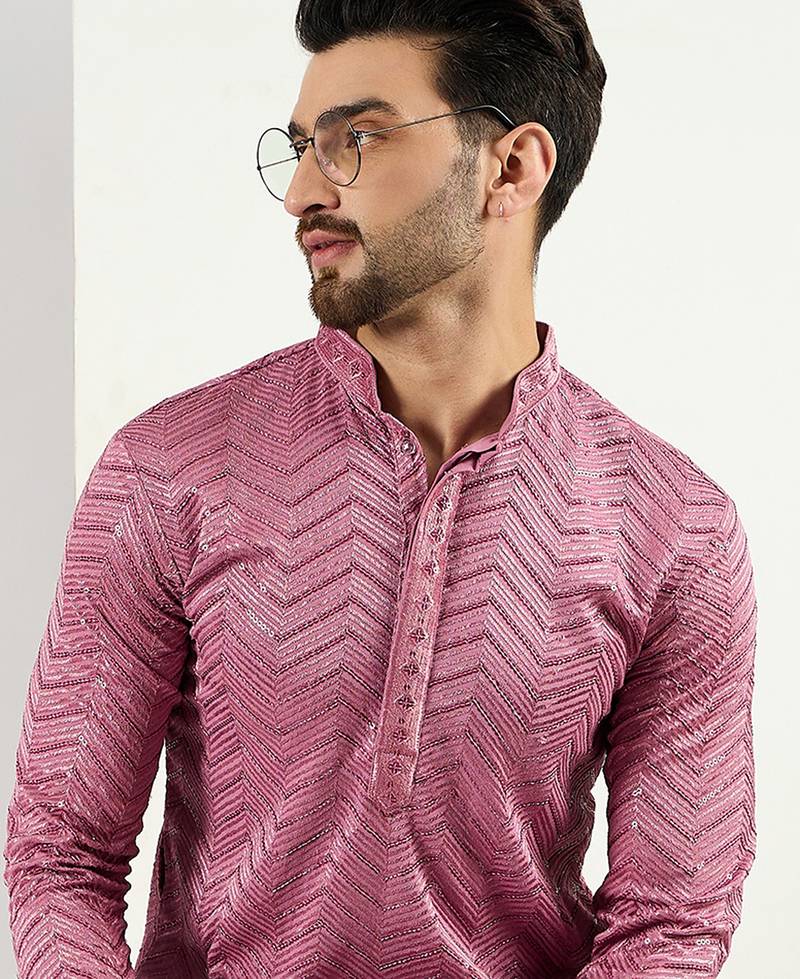 Product Name Men Pink Viscose Rayon Solid Embroidered Straight Kurta With Trouser