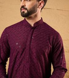 | Product Name | Men Purple Rayon Blend Solid Embroidered Straight Kurta | |