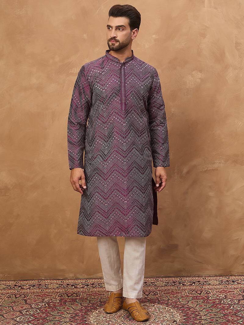 | Product Name | Men Purple Silk Blend Geometric Printed Straight Kurta | |