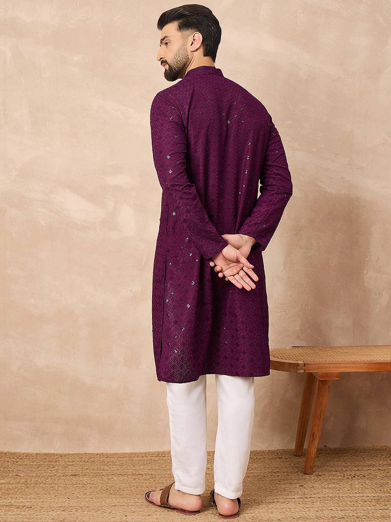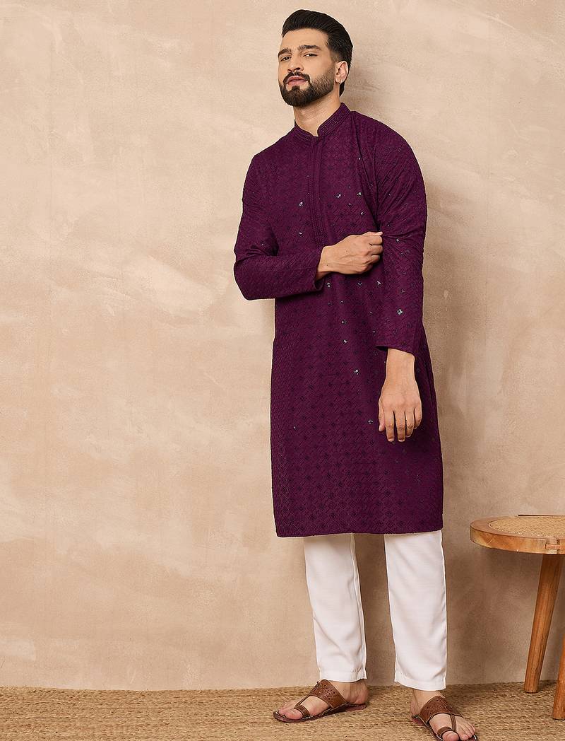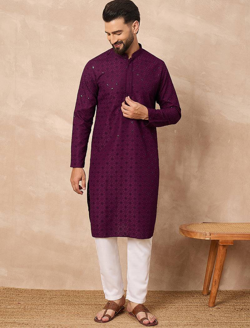 | Product Name | Men Purple Viscose Rayon Solid Embroidered Straight Kurta | |