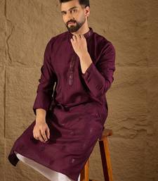 Product Name Men Purple Viscose Rayon Solid Embroidered Straight Kurta