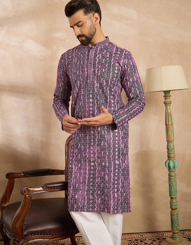 | Product Name | Men Purple Viscose Rayon Solid Printed Straight Kurta | |