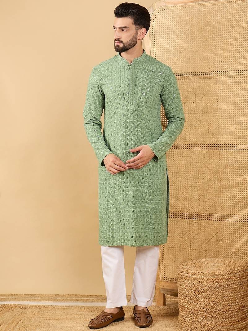 | Product Name | Men's Green Viscose Rayon Solid Embroidered Straight Chikankari Kurta | |