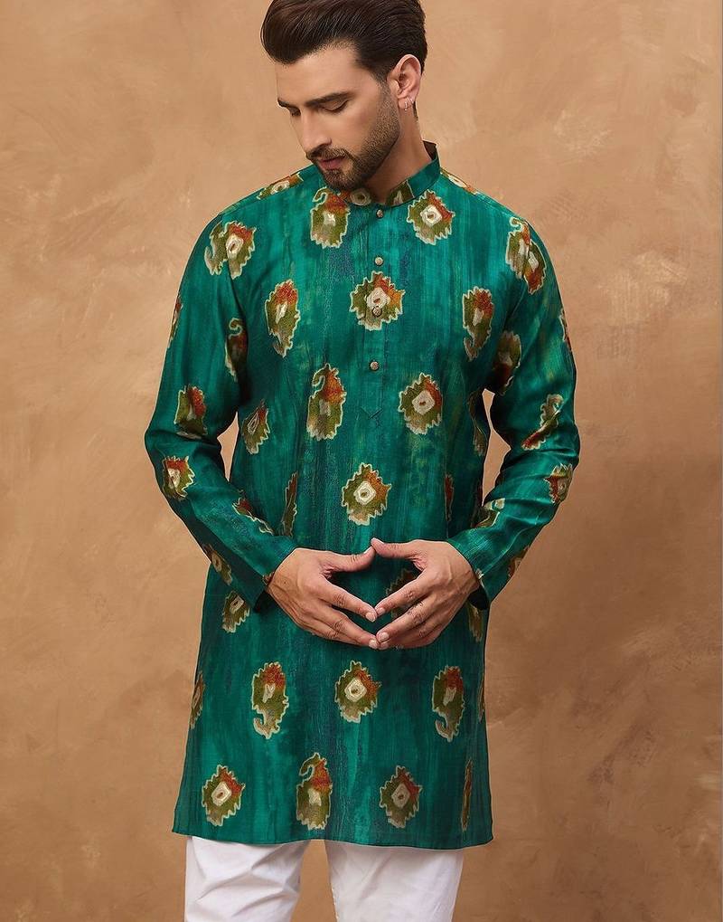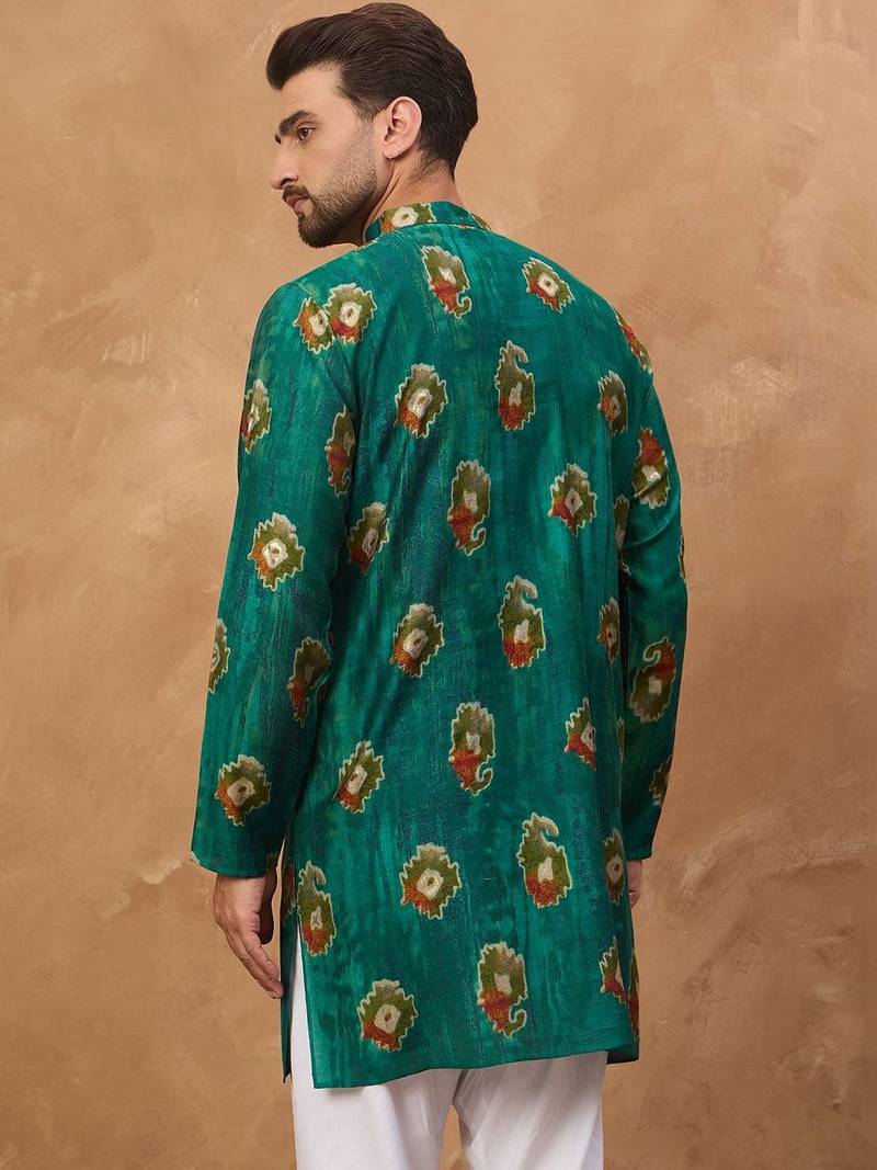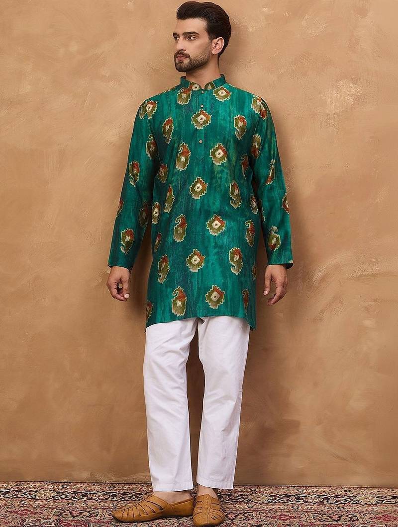 | Product Name | Men Teal Viscose Rayon Ethnic Motifs Printed Straight Kurta With Pant Set | |
