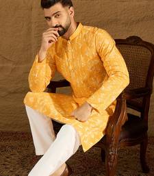 | Product Name | Men Yellow Cotton Batik Embroidered Straight Kurta With Trouser | |