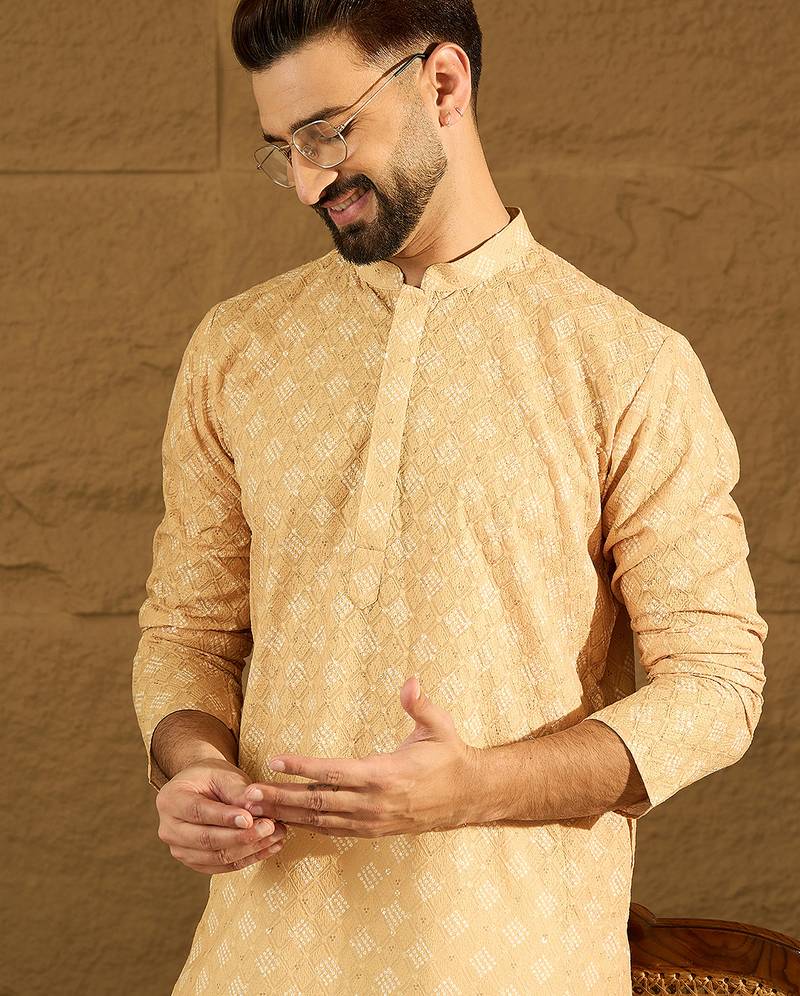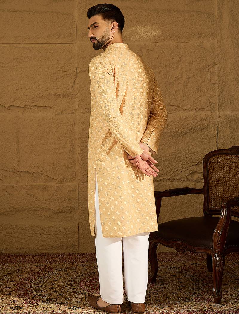 | Product Name | Men Yellow Viscose Rayon Bandhani Embroidered Straight Kurta With Trouser | |