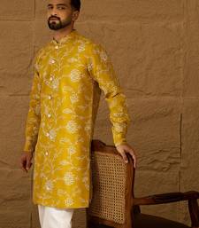 | Product Name | Men Yellow Viscose Rayon Solid Embroidered Straight Kurta With Trouser | |