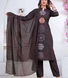 Cotton cambric straight kurti-pant-dupatta set