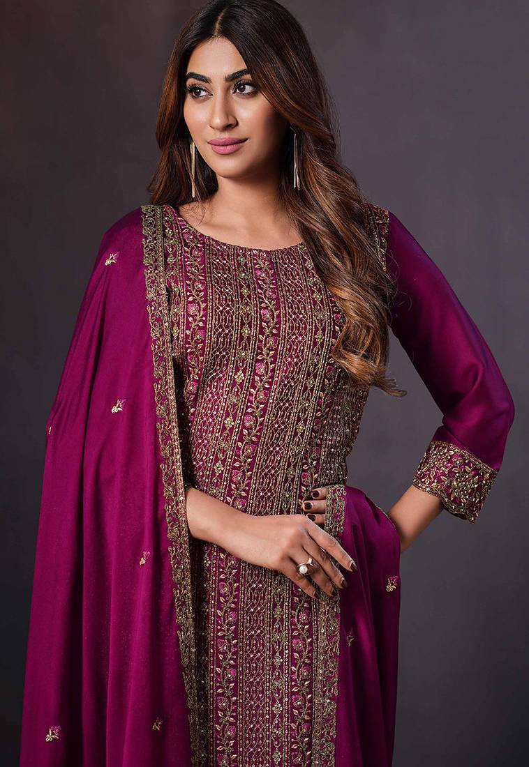 Kameez : Color- Rani Pink / Fabric- Silk Blend