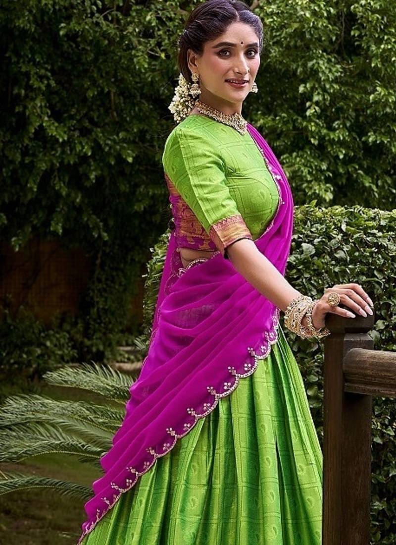Traditional perrot poly cotton half saree with zari weaving work lehenga choli